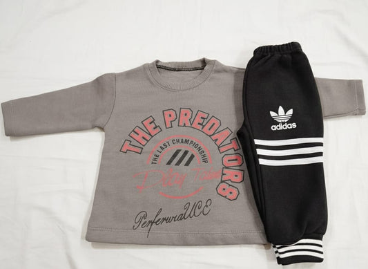 Kids Winter Tracksuit | Grey & Black Fleece Outfit for Boys | Warm & Comfortable Kidswear Pakistan