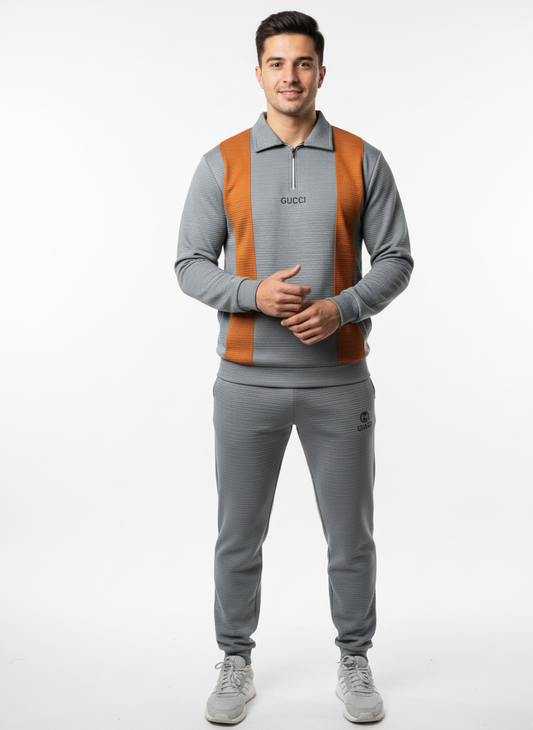 Grey & Orange 250 GSM Fleece Quarter-Zip Tracksuit Top for Men | Premium Winter Wear Pakistan