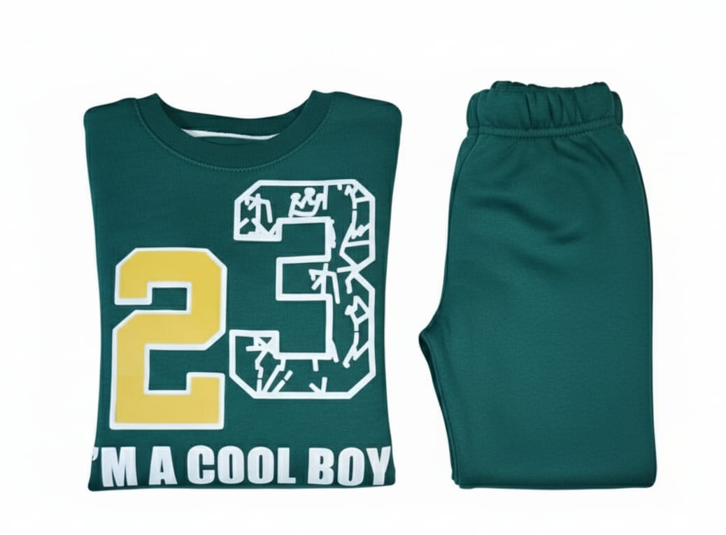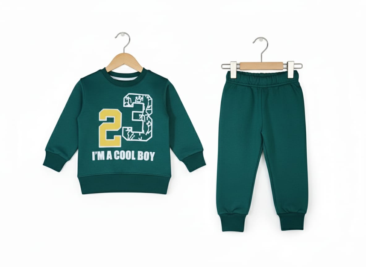 Green Fleece Tracksuit for Boys | “I’m a Cool Boy” Winter Outfit | Premium Kidswear Pakistan