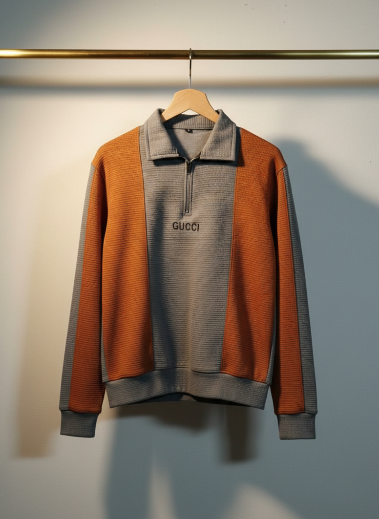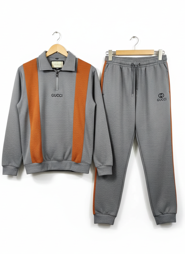 Grey & Orange 250 GSM Fleece Quarter-Zip Tracksuit Top for Men | Premium Winter Wear Pakistan