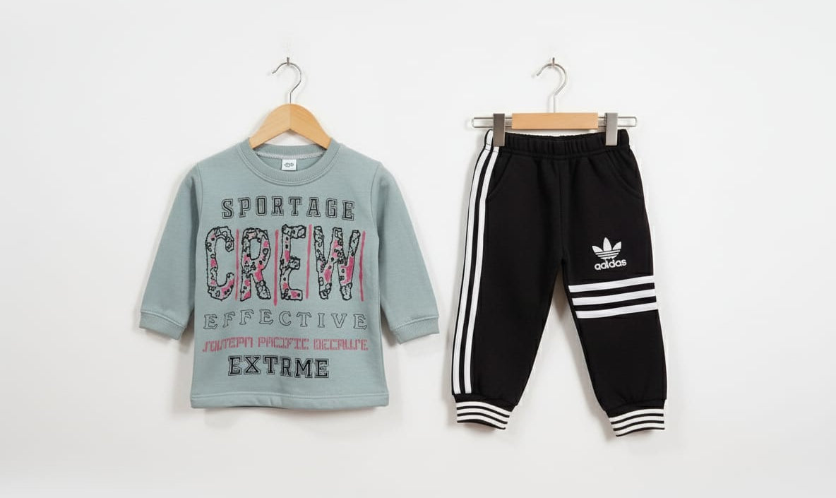Keep your little ones warm and stylish this winter with our Kids Fleece Tracksuit, designed for comfort and durability. Made from soft cotton fleece and warm fabric, this light grey and black tracksuit offers a perfect balance of coziness and trendy sporty style. Ideal for school, outdoor play, or casual wear, it features a bold printed sweatshirt and elastic jogger trousers for easy movement. Shop premium kids tracksuits in Pakistan — soft, stretchable, and built for all-day comfort.
